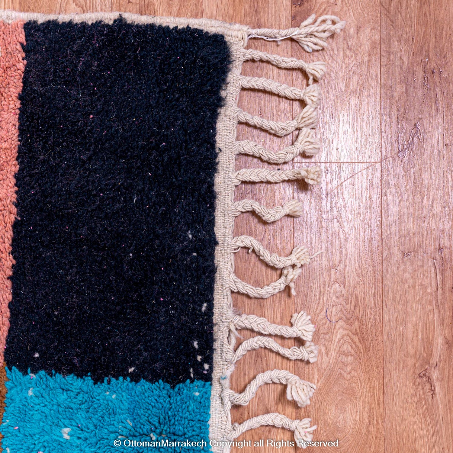 Each rug is intricately handwoven by skilled Moroccan artisans.