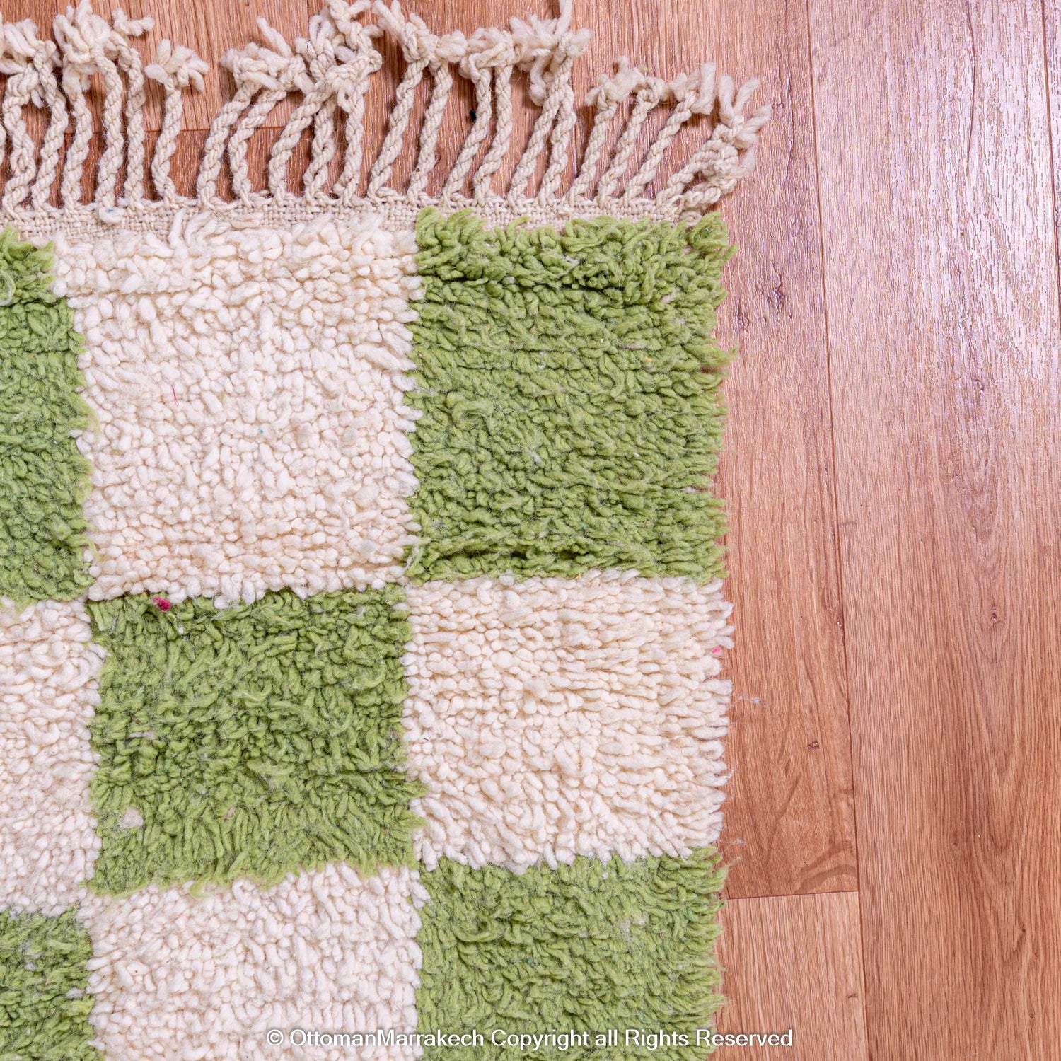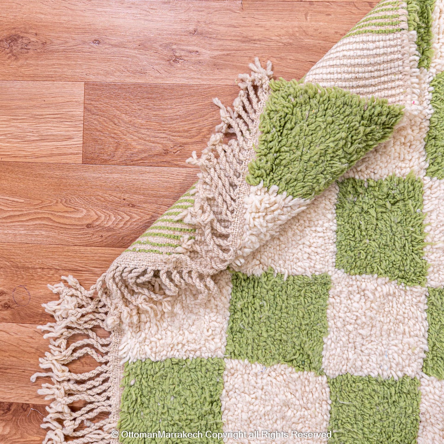 Green and White Checkered Moroccan Rug – Plush and Handmade