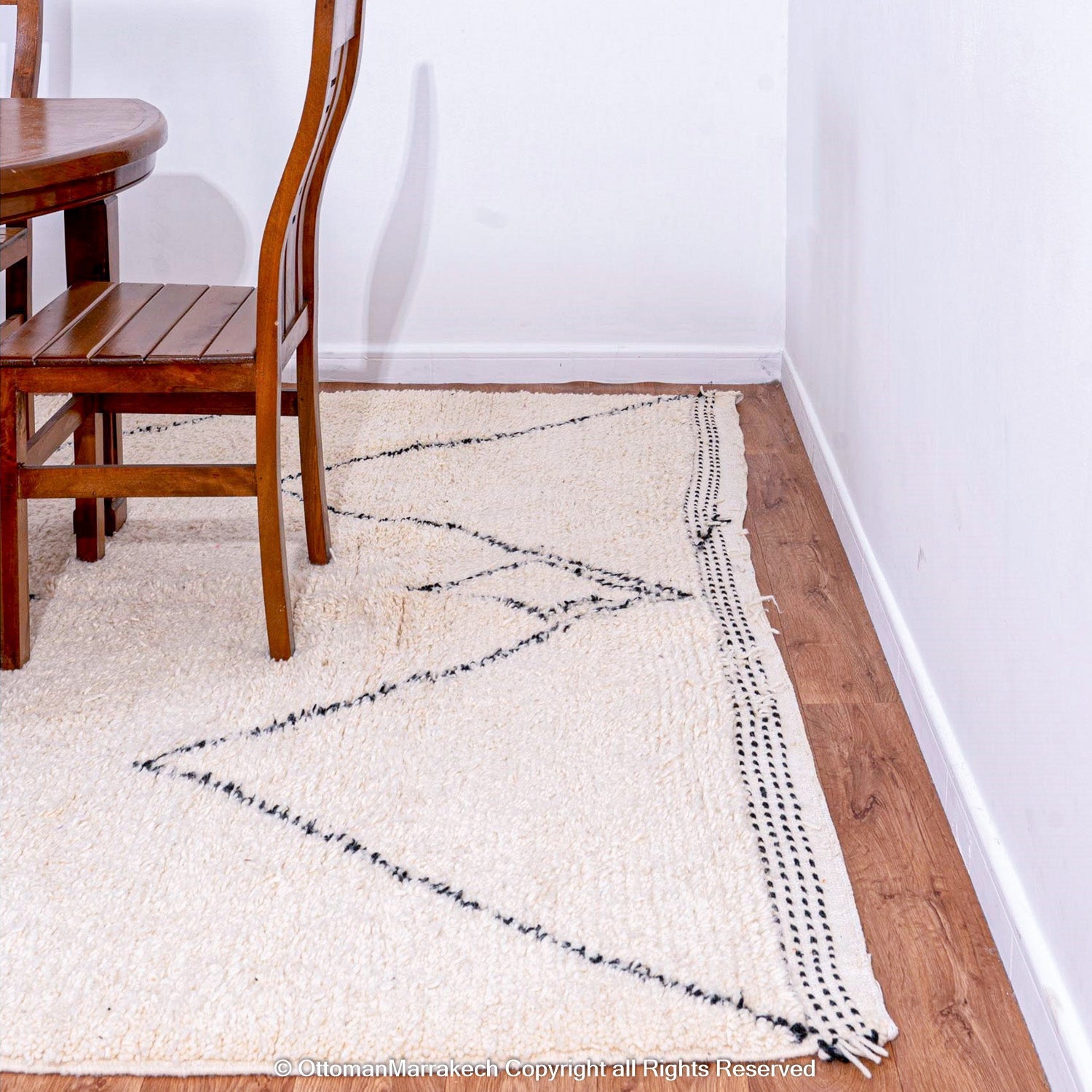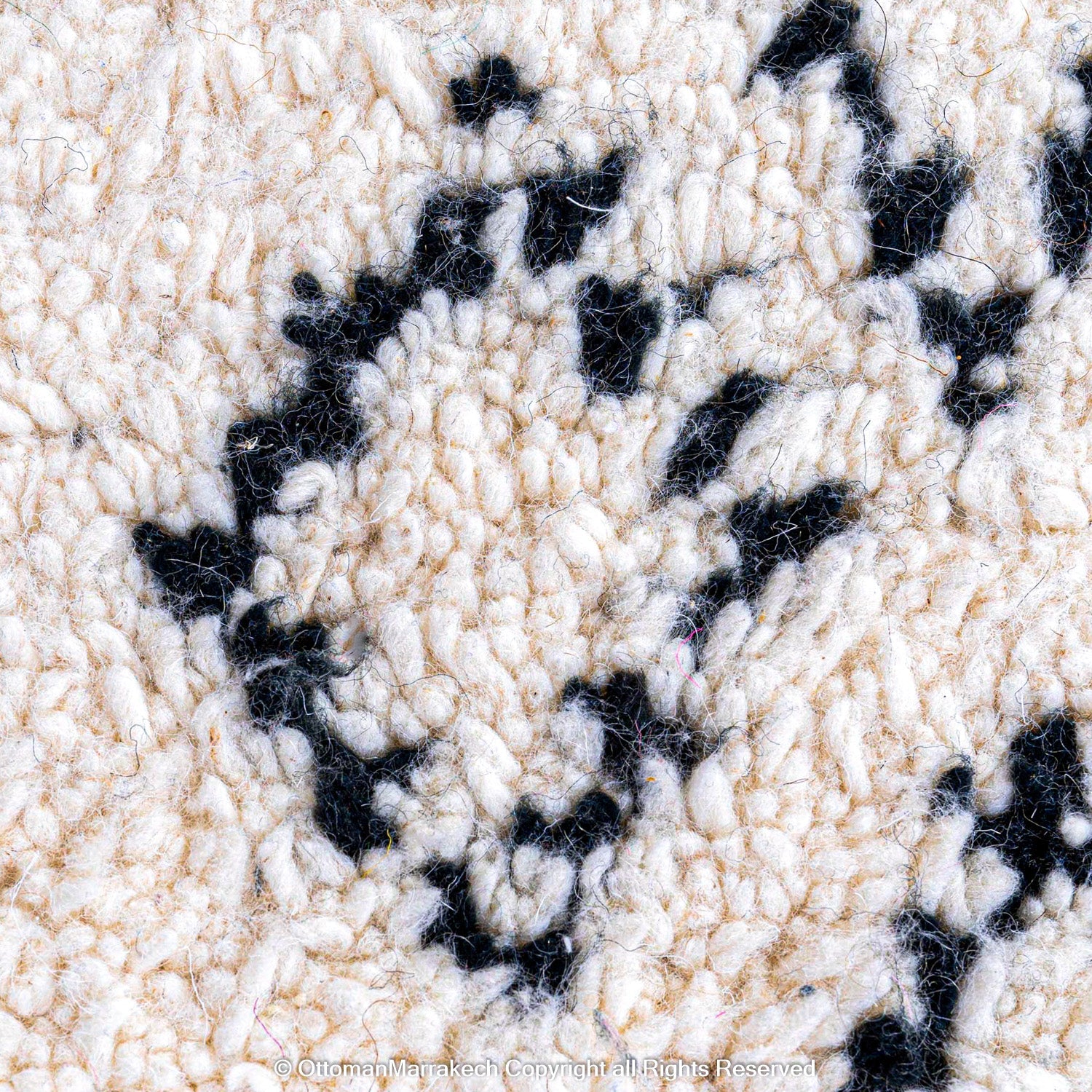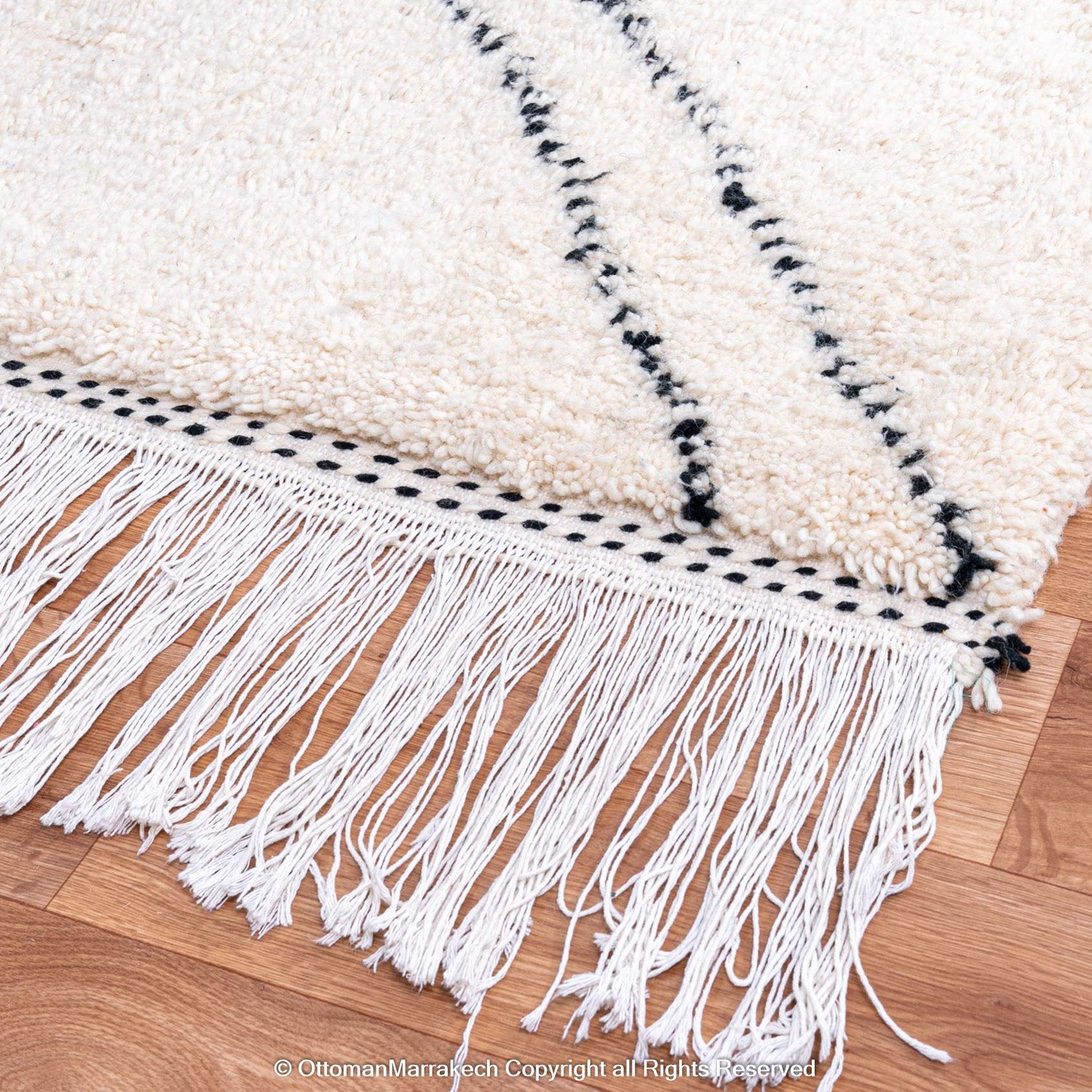 White Beni Ourain Moroccan Rug with Black Tribal Lines - Handwoven Atlas Mountain Design