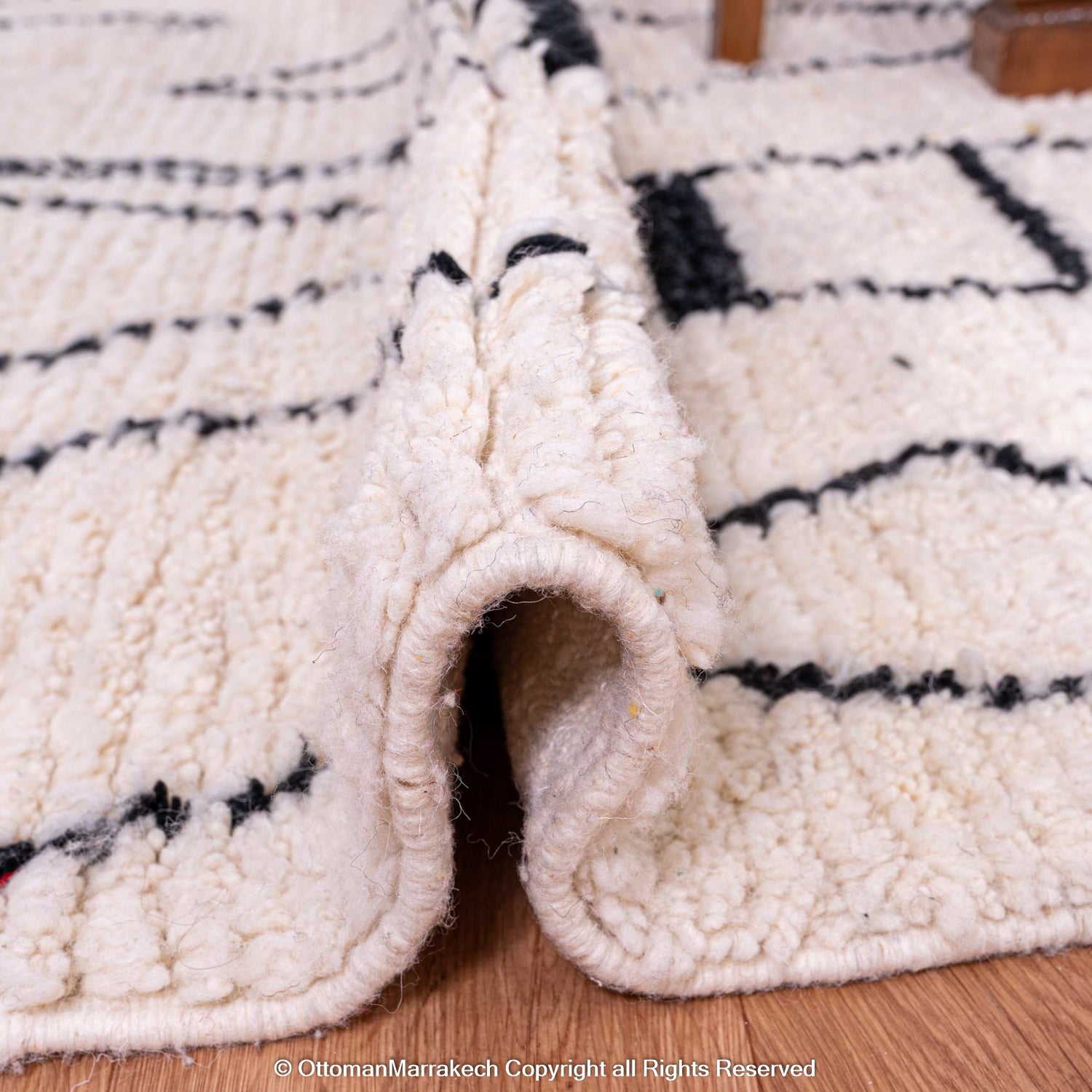 Made from premium, naturally sourced wool, the rug offers a plush texture that feels luxurious underfoot. Its neutral palette and bold pattern make it an ideal addition to living rooms, bedrooms, or offices, adding warmth, texture, and an air of authenticity to any space.